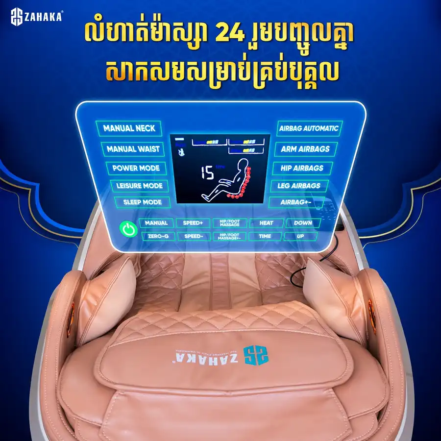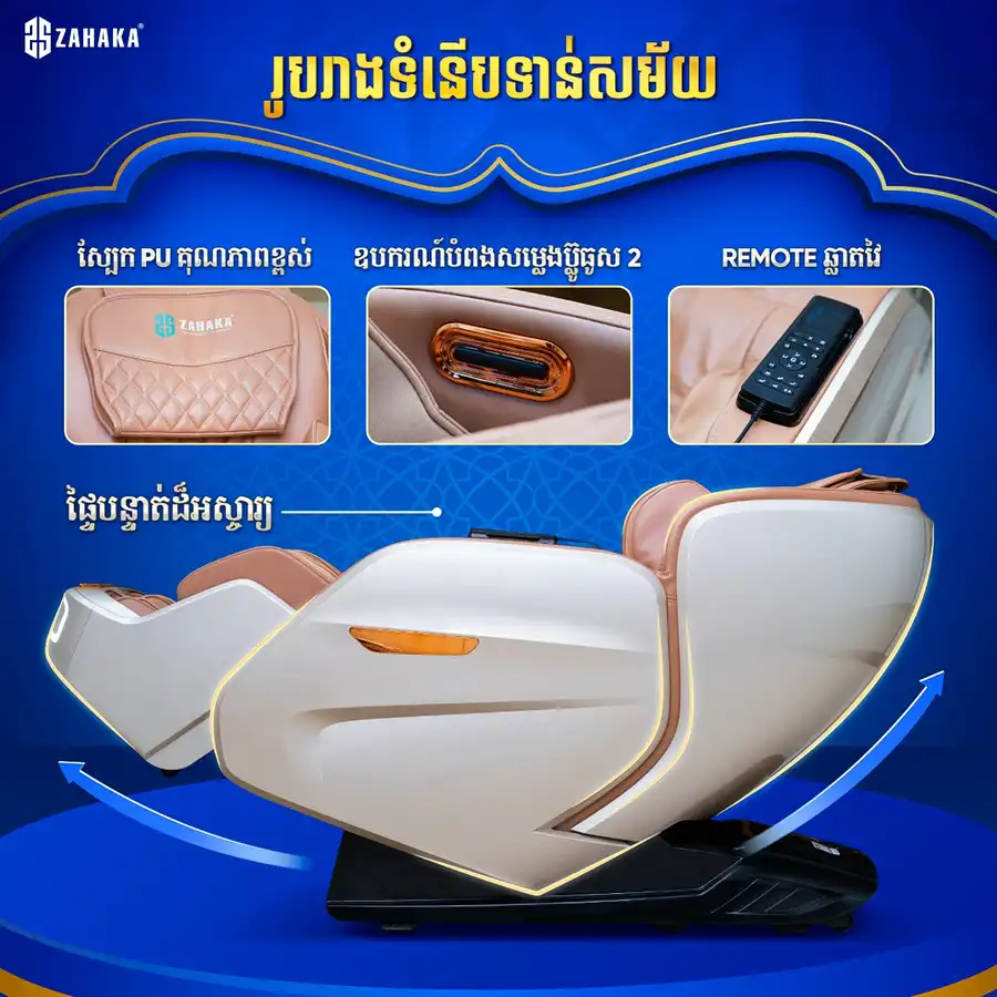 The Zahaka H3 Plus Premium Massage Chair has arrived, showcasing an elegant royal design that captivates at first glance. Combining luxury aesthetics with cutting-edge massage technologies, the H3 Plus promises to revolutionize how families in Cambodia choose their ideal massage chair.